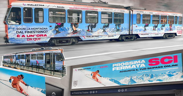 La strategia di comunicazione presidia punti strategici della città attraverso un tram completamente brandizzato e una domination pubblicitaria presso la stazione e la fermata Metro di Porta Nuova. Questa presenza capillare crea un collegamento diretto tra l’ambiente urbano e l’offerta montana.