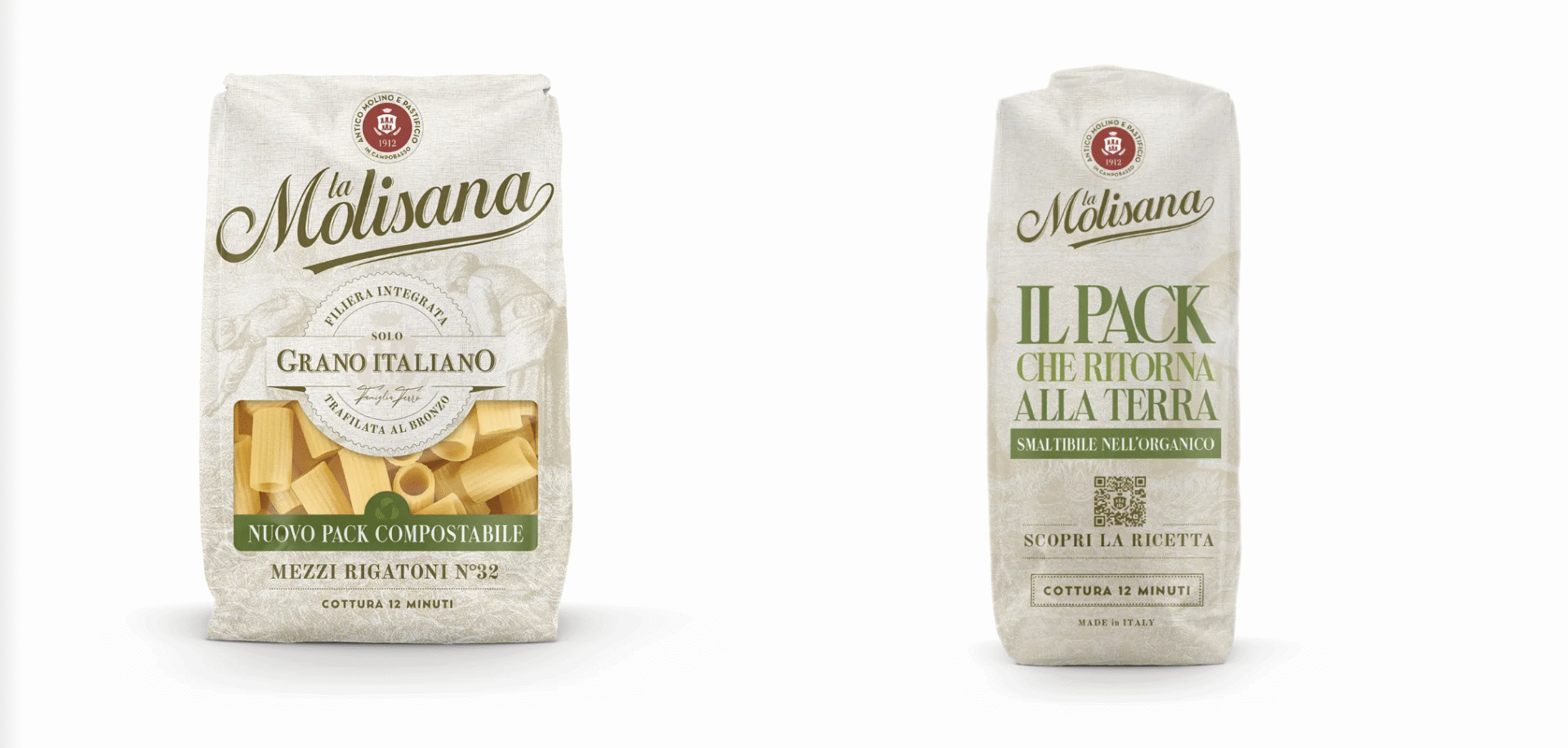 Attualmente, il pack compostabile è disponibile per le referenze di pasta lunga, con un piano di estensione previsto per tutti i formati da 500g della linea classica e integrale del brand molisano.