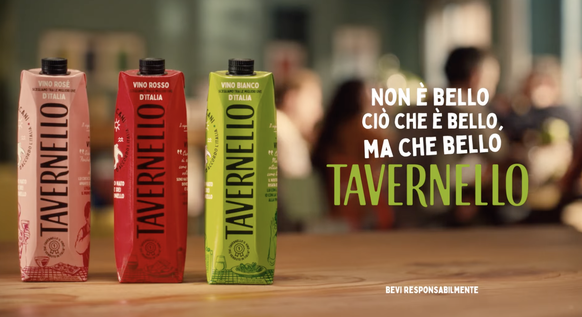 Al centro della nuova comunicazione c’è la campagna sviluppata da Leagas Delaney, che vede Nino Frassica come protagonista e interprete dell’immaginario rinnovato del brand. Il claim scelto è “Non è bello ciò che è bello, ma che bello Tavernello”, un gioco di parole che esalta la spontaneità, la leggerezza e l’autenticità della vita di tutti i giorni, spostando il focus dal vino come simbolo di status al vino come elemento di condivisione e relazione.